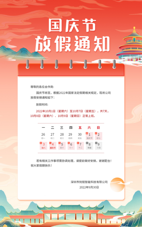 盛世華誕,舉國同慶,感謝您對刻銳的支持與信任,在后面的日子里,我們將一如既往地為您提供優質的產品與服務。
