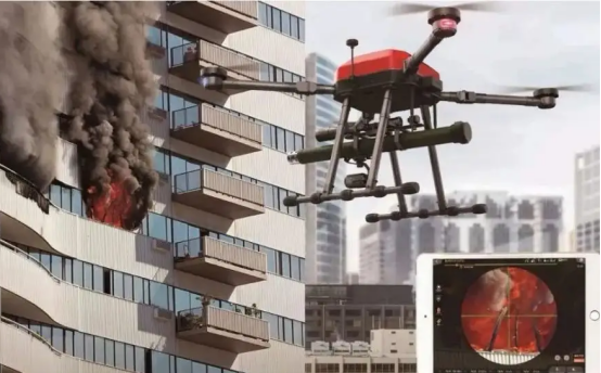 近些年來,無人機(jī)也被廣泛應(yīng)用于高層建筑滅火中,特別是當(dāng)起火點(diǎn)位置很高且現(xiàn)場(chǎng)煙霧很大時(shí),通過無人機(jī)可以準(zhǔn)確而快速地找到起火點(diǎn),這樣消防員滅火可以更加有的放矢。