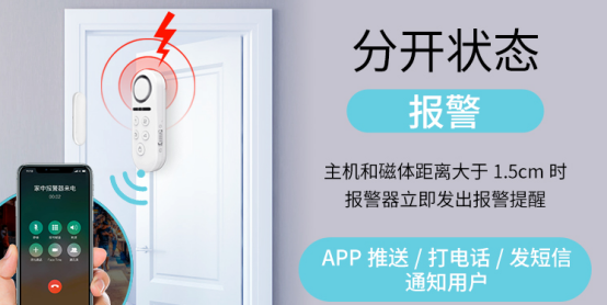 門磁報警器是智能家居安防產品里一種探測報警裝置,主要用來監控門、窗的閉合狀態。