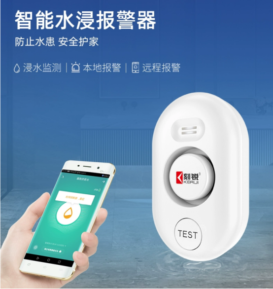 刻銳WD62水浸報警器,屬于接觸式聯網型水浸報警器,能有效的監測各種場所的漏水情況。它的底部有4個探針,表面有2個觸片,當檢測到有水漫過底部的兩個以上的探針或者覆蓋到表面的2個觸片,就會發出高分貝的報警聲,并通過電話、短信、APP等多種方式向用戶遠程告警(需連接WIFI )。