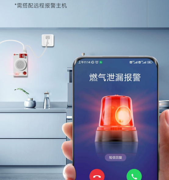 若搭配報警主機一起使用,發現燃氣泄漏超標后,不僅可以現場高分貝報警,而且還可通過電話、短信、手機APP信息等多種方式向用戶遠程告警。