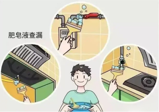 判斷燃氣是否泄漏一般有3種方法,分別是聞氣味、看氣表、涂抹肥皂水。聞氣味是聞是否有刺鼻異味。雖然燃氣本身無色無味,但廠商一般會對它進行加臭處理。一旦聞到刺鼻異味,就可能是燃氣泄漏了。看氣表是在不使用燃氣的情況下,查看燃氣表末位數字是否變化,如果有變化則可判斷為燃氣泄漏。涂抹肥皂水是將肥皂水依次涂抹在燃氣管、軟管等的接口處,如果這些地方有氣泡產生并逐漸變大,說明燃氣可能泄漏。
