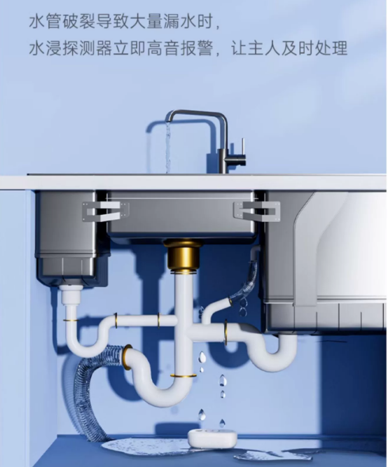 生活中難免遇到漏水、反水問題。接口斷開、水龍頭忘關、水管爆裂、凈水器漏水、地漏反水等情況。漏水發生,如果有人在家還好,可以及時處理,如果沒人,漏水量大,泡時間久了,地板起鼓、家具受損,甚至漏到樓下,而有了水浸報警器后,一旦出現漏水情況,就會及時報警,提醒用戶及時處理,避免造成后續災害或損失。