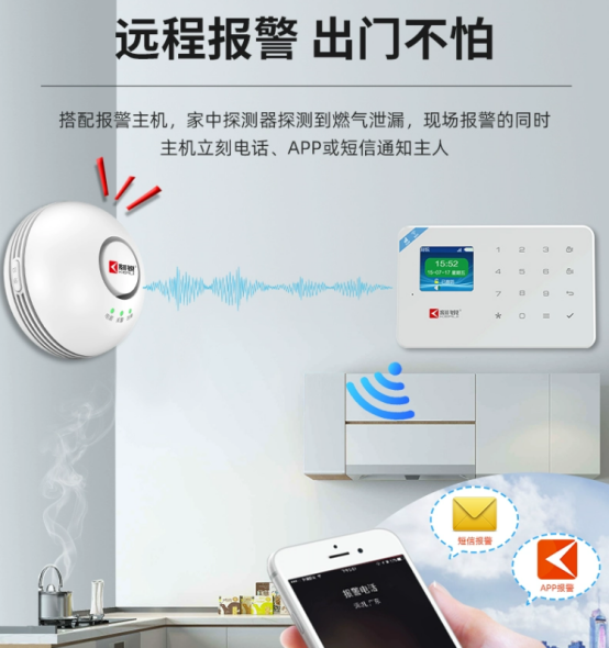 若是搭配報警主機使用,發現燃氣泄漏后,現場報警的同時還能通過電話、APP、短信等方式向用戶遠程告警。
