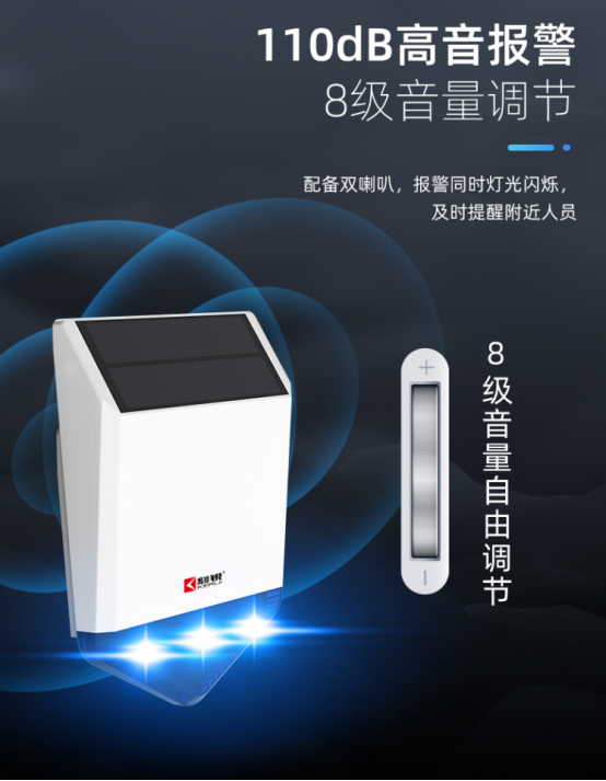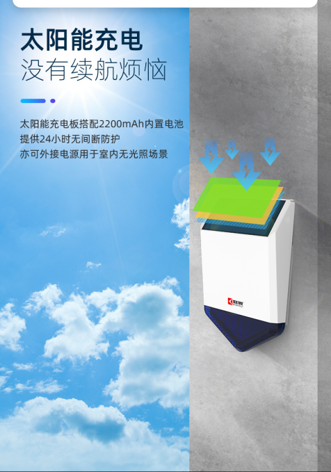 刻銳研發的SJ1太陽能聲光報警器是將報警主機與警號集成一體的安防報警產品,該報警器可以連接紅外探測器當報警主機使用,也可以連接報警主機當聲光警號使用。