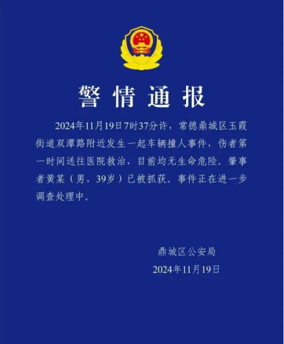 2024年11月19日早上,湖南常德鼎城區永安小學門前發生一起撞人事件。事故發生在早晨7時許,正值學生入校上課高峰時段。一男子駕車意圖沖入校園,撞到保安、學生及多名學生家長,現場群眾合力阻止肇事者行為并將其控制。目前,所有受傷人員均已被送往當地醫院接受緊急治療,確認無生命危險。