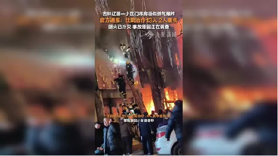 吉林省遼源市應急管理局通報,12月12日下午18時17分許,市消防救援支隊接報警,遼源市一小區門市房發生疑似燃氣爆炸,目前明火已撲滅,住院治療13人,其中重傷2人,事故原因正在調查中。