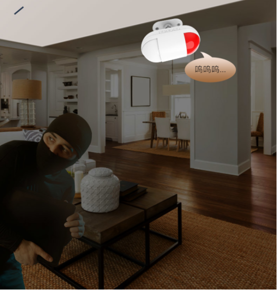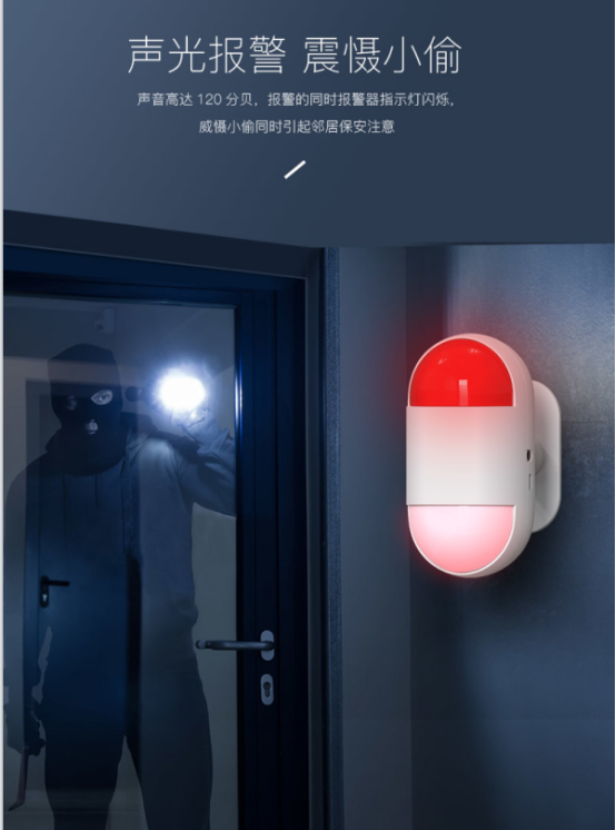 夜晚當報警器使用時,只要紅外探測器(內(nèi)置或外置的)探測到有人時,就會發(fā)出刺耳的報警聲嚇退入侵者,同時提醒鄰居,給用戶帶來更貼心更放心的安全保障。