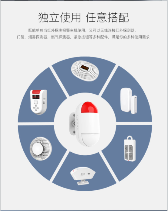 如果想全方位的保障家居財產(chǎn)安全和家庭人員人身安全,它還可以連接門磁探測器、燃氣泄漏探測器、煙霧探測器、一氧化碳探測器等配件,防止火災、燃氣爆炸、煤氣中毒等事故的發(fā)生。