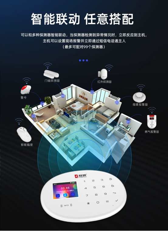 除了防盜功能外,這種設備還能連接煙霧探測器、燃氣泄漏探測器、緊急呼救按鈕、一氧化碳探測器等配件,組成智能消安融合報警系統,實現防火、防燃氣爆炸、防煤氣中毒、緊急呼救等功能。